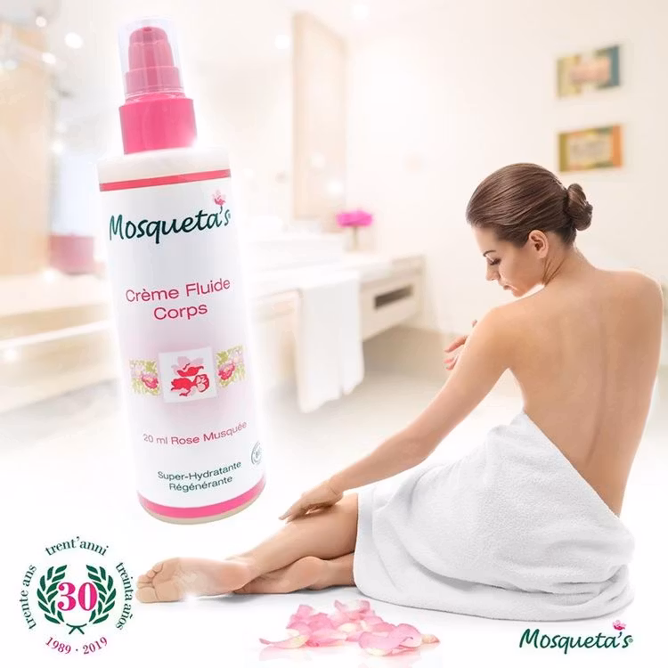 Fuktgivande flytande kräm skyddar och slätar ut. Innehåller 20 ml av rosenolja, som motsvarar 10% av de totala ingredienserna. Den intensiva uppstramande och regenerativa verkan av oljan förstärks av extrakt av Rosa Centifolia och Centella Asiatica (Sallatsspikblad). Den Sheasmör och Marigold (ringblomma) ger näring, medan majsprotein säkerställer optimalt skydd och återfuktning. Används dagligen för att göra huden mycket mjuk och silkeslen. Applicera efter dusch eller ett bad. Creamen fungerar perfekt även som efter solbadskräm.