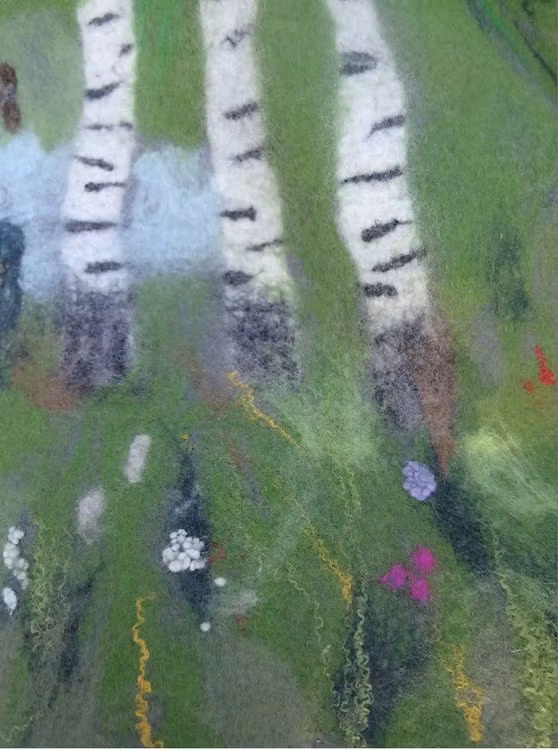 Vår vackra Natur och ett magnifikt landskap ger enorma krafter för att skapa den enastående handtovade konstjackan med en vacker tavla på ryggen: björkar, vatte