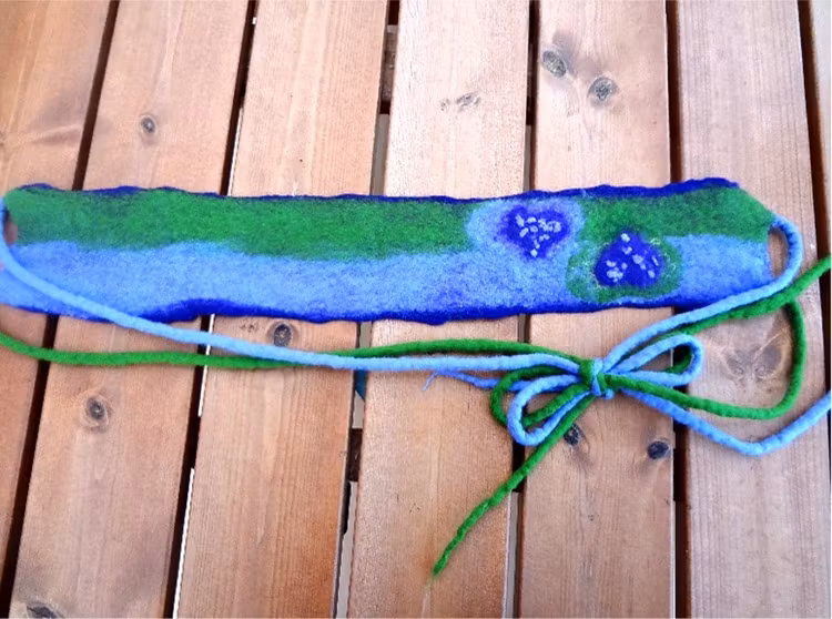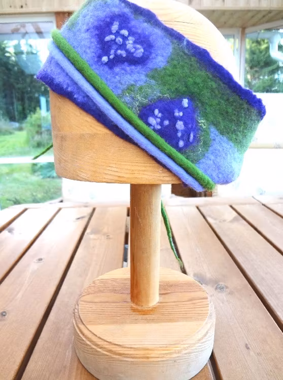 Helt unik accessoar med flera bärbara möjligheter. Tre i ett - du kan använda den som ett vackert hårband, lika snygg som ett litet halsband i viktoriansk stil, och även skärp. Perfekt modeaccessoar är gåvan för varje klädsel och tillfälle! Modell one size passar alla huvudstorlekar och halsar. Hårbands lila-lavendel-gröna färger kombineras utmärkt med plagg och accessoarer Lavendel- serien liksom väst-jacka och pulsvärmare.