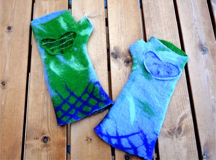 Snygga, sköna, handgjorda, tovade/ filtade pulsvärmare i vilka du inte kommer kunna gå obemärkt. De är snyggare i verkligheten än på bilden.