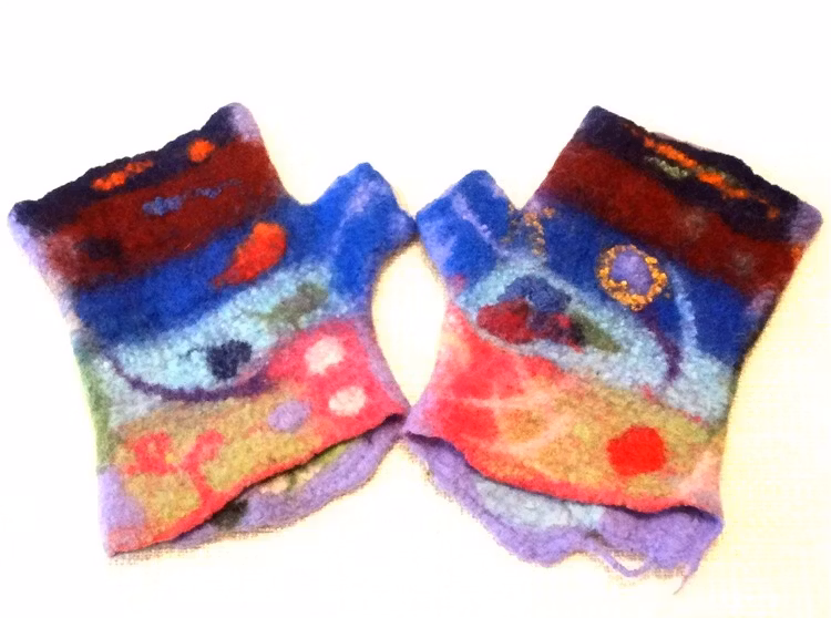 Snygga, sköna, handgjorda, tovade/ filtade pulsvärmare i vackra multifärger med multimönster på båda sidor. I dessa små konstpärlor lockar du ögonblick hos mång