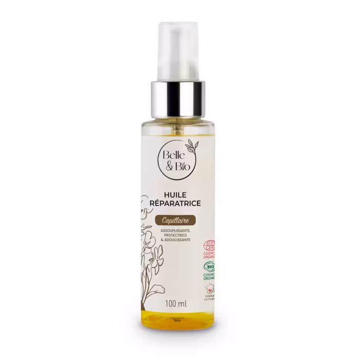 Oljor har alltid varit kända för sina skönhetsfördelar, både på hud och hår. Hårreparationsoljan kombinerar 6 ekologiska vegetabiliska oljor för att ge ditt hår fullständig vård. Varje användning är ett ögonblick av mjukhet och komfort, samtidigt som den har en verklig verkan på ditt hår. Dess rika konsistens ger näring på djupet och lämnar en lätt, fräsch doft. Denna behandling används före schamponering, den kräver en tid att lämna på håret för att få bra resultat och omstrukturera det så mycket som möjligt.
