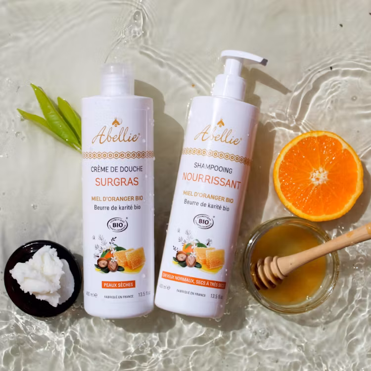 Upptäck detta närande schampo tillverkat av ekologisk italiensk honung från apelsinblomma och ekologiskt sheasmör.